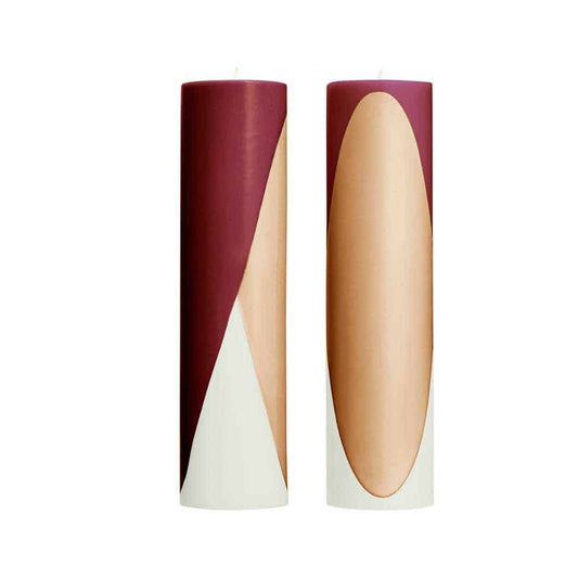 Diagonal Pillar Candle 6.5 x 25 cm Burgundy Cream