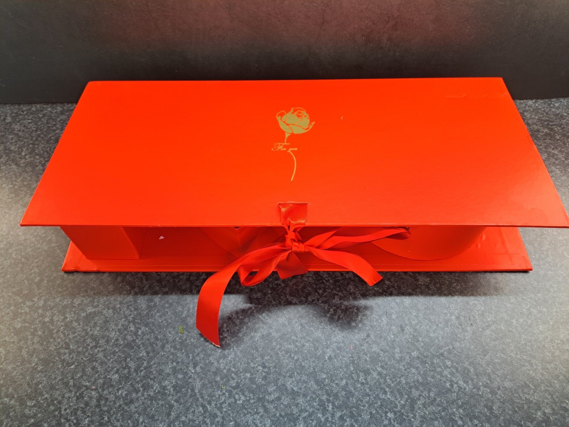 Deze prachtige rode box met een elegante gouden roos en voor jou tekst er op is hét ultieme romantische gebaar. De Love Box is gevuld met betoverende details zoals: