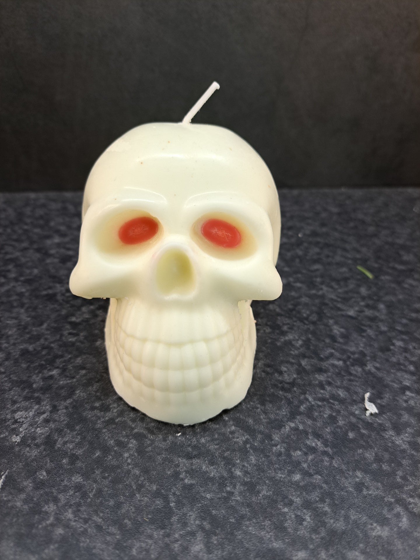Unieke Doodskop Kaars met Rode Ogen – Handgemaakt en Decoratief