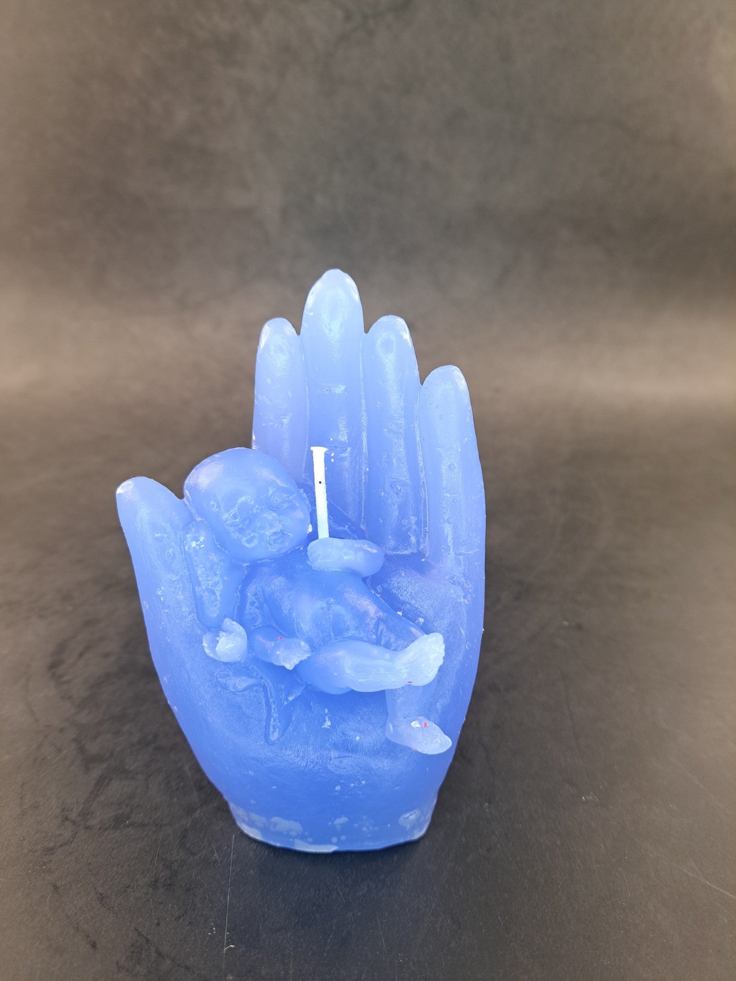Deze hand met kind er in is hand gemaakt en is een uniek stuk dat zeker de aandacht trekt van iedereen die hem ziet of ontvangt . De kaars is gemaakt in de vorm van hand met kind en schattige cadeau met prachtige details .