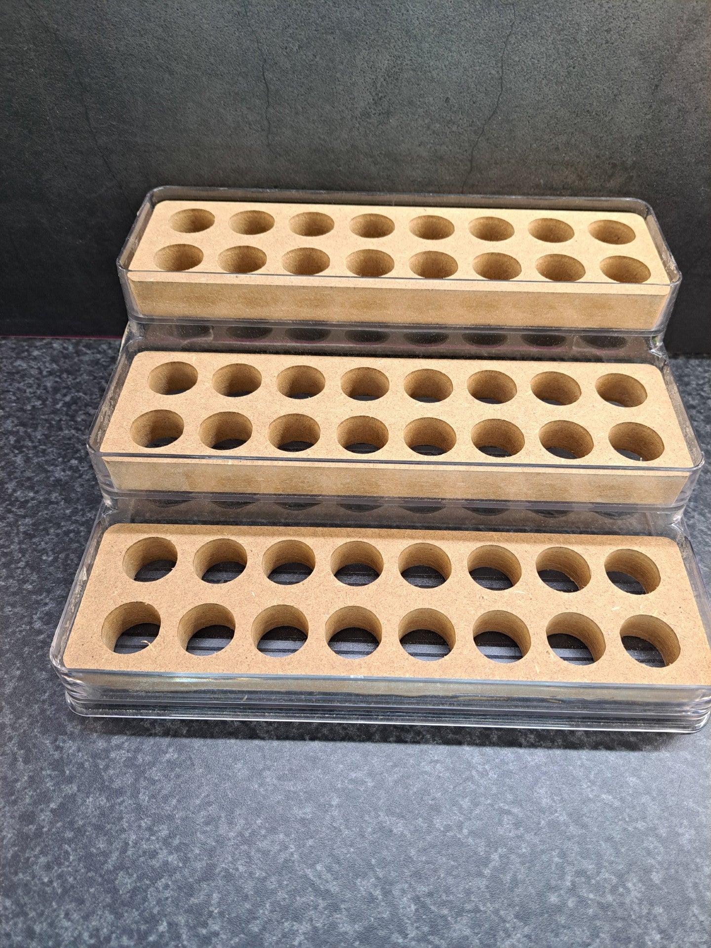 Ben jij creatief met kaarsen maken en gebruik je veel verschillende kleuren verf? Dan is deze opbergstelling precies wat jij nodig hebt! Geen rommelige lades of onoverzichtelijke dozen meer – met deze praktische en stijlvolle houder houd je al je kaarsenverf netjes georganiseerd én goed zichtbaar.