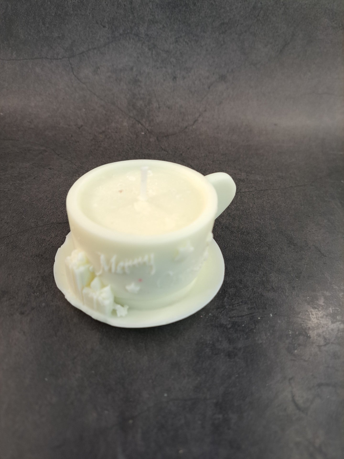 Handgemaakte Kerstkaars in de Vorm van een Kop en Schotel – Uniek en Betoverend!