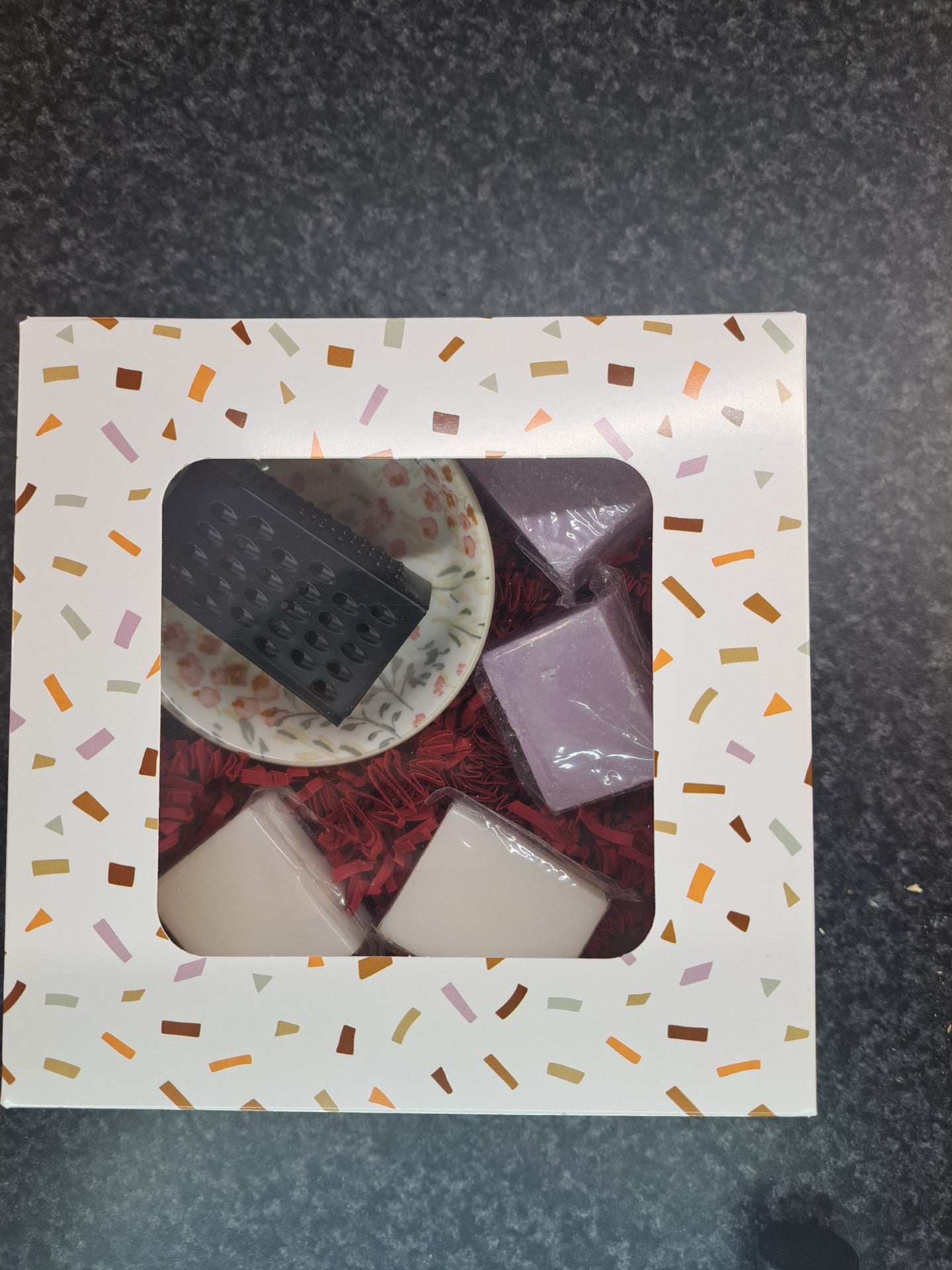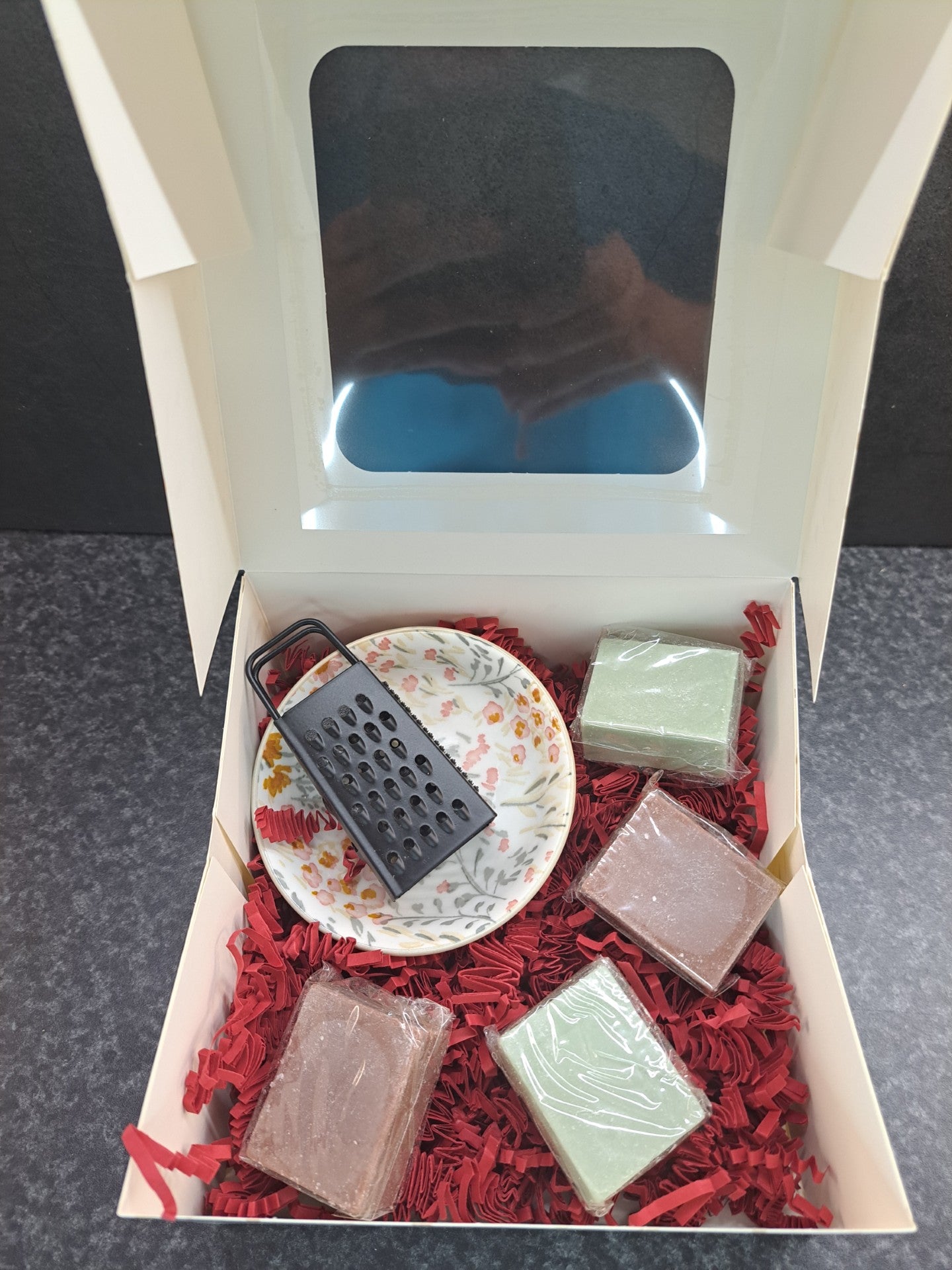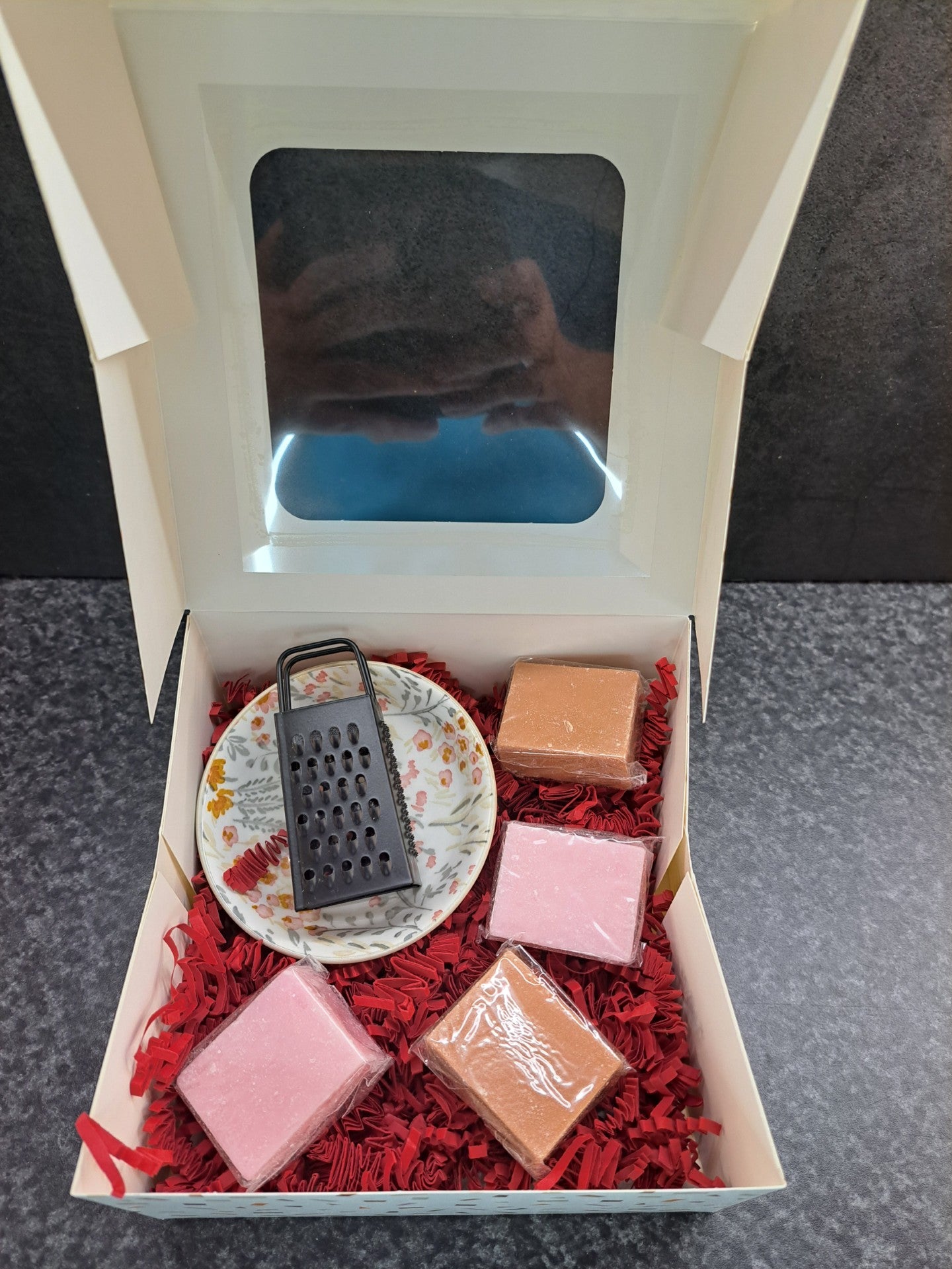 Luxe Cadeaudoos met Schaaltje, Rasp en 4 Amberblokjes – Stijlvol en Geurig Geschenk