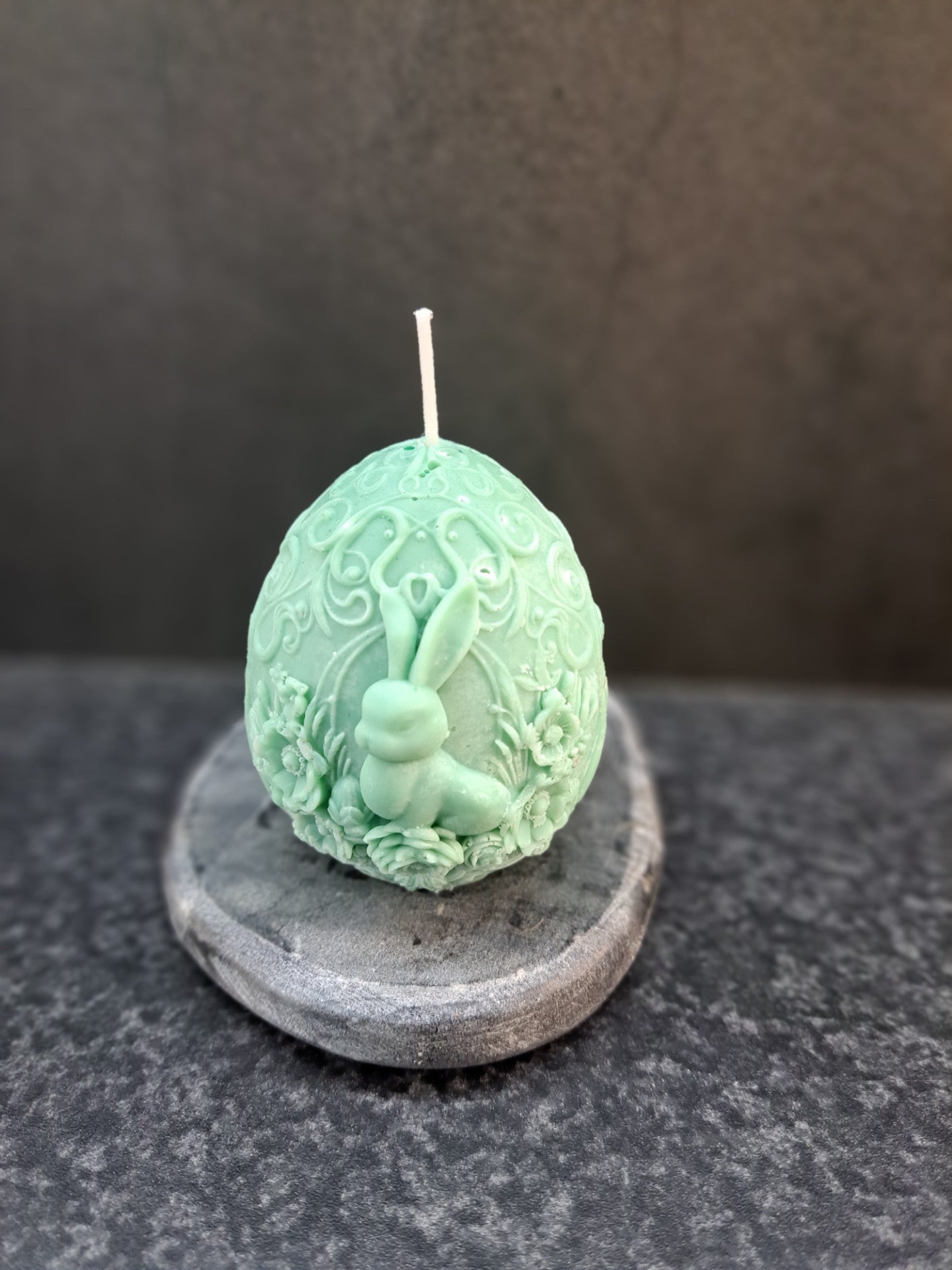 Uniek ontwerp: De combinatie van een ei en konijn maakt deze kaars extra speciaal.