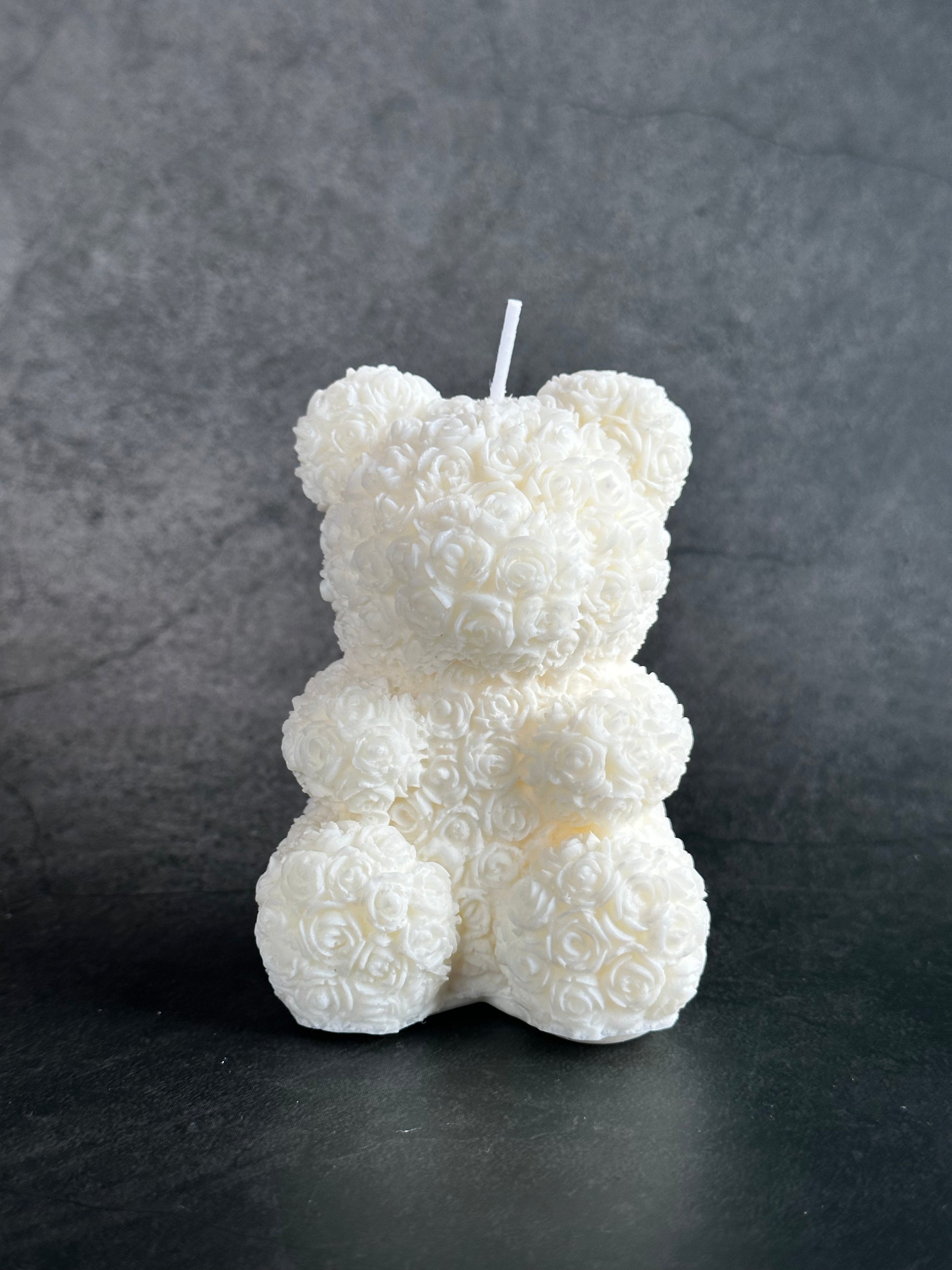 Deze beer bedekt in rozen is een uniek stuk dat zeker de aandacht trekt van iedereen die hem ziet. De kaars is gemaakt in de vorm van een schattige beer met prachtige details van roosjes.