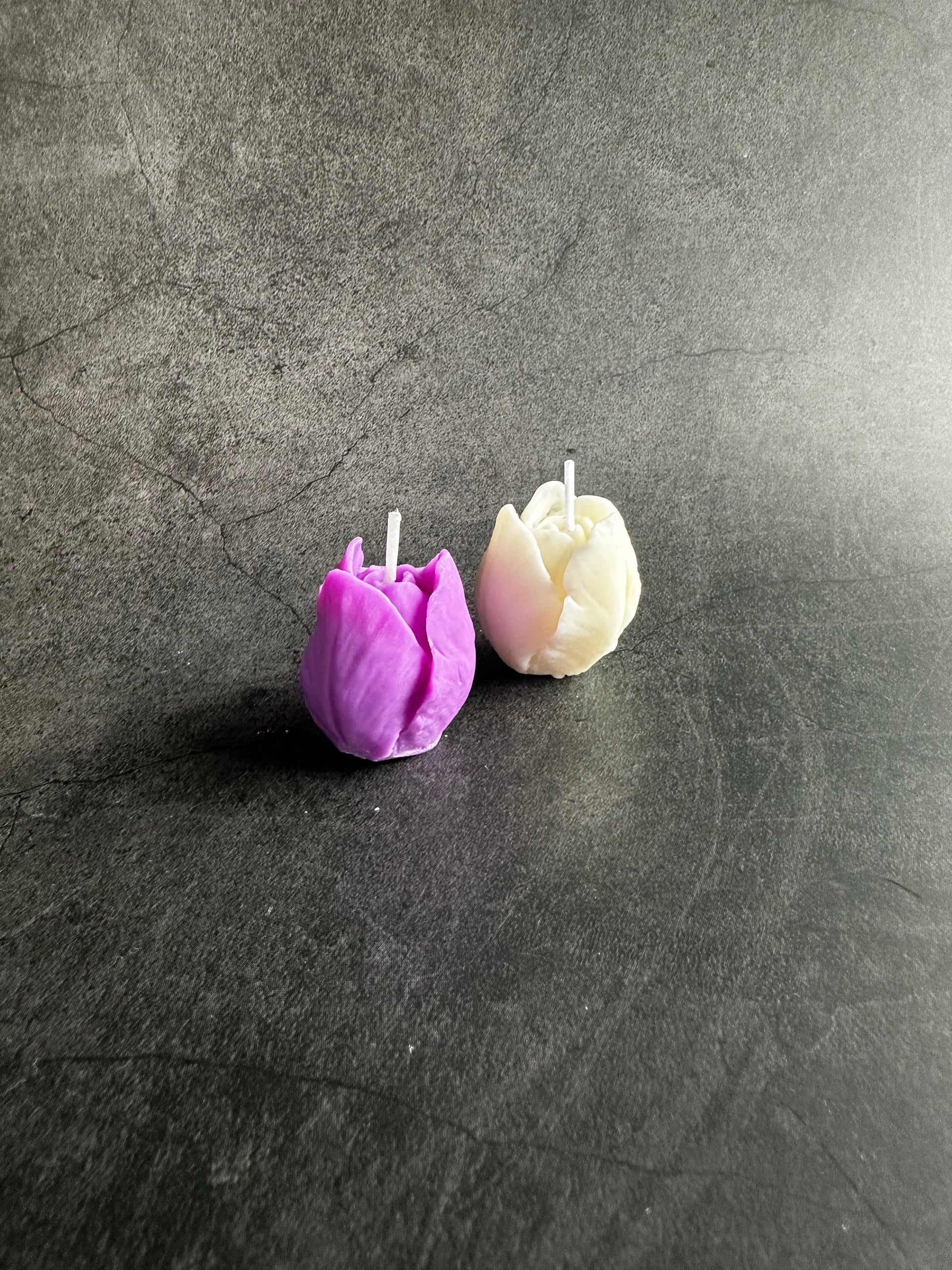 Een kaars van een levensecht ontwerp dat de schoonheid van een bloeiende tulp weer geeft!